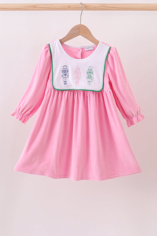 Pink nutcracker embroidery velvet dress
