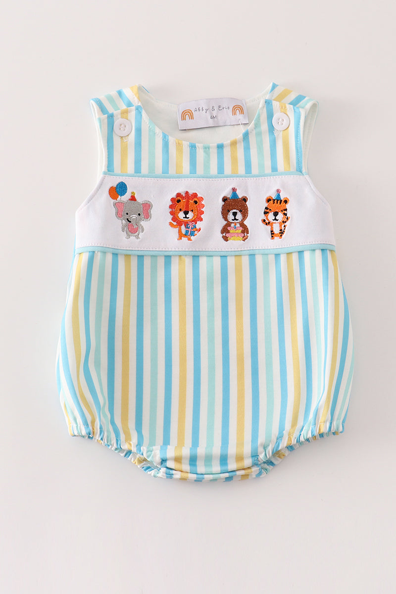 Blue animals birthday embroidery boy bubble