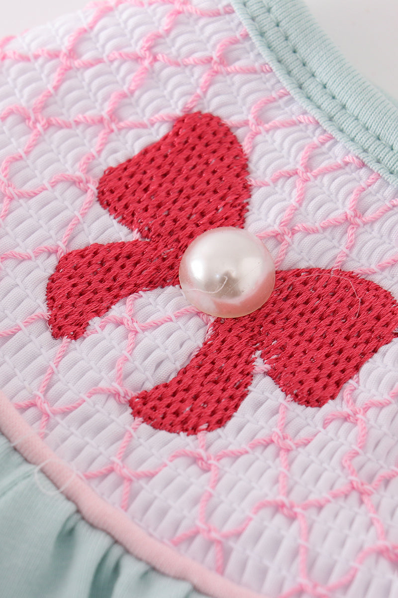 Blue bow pearl smocked dress