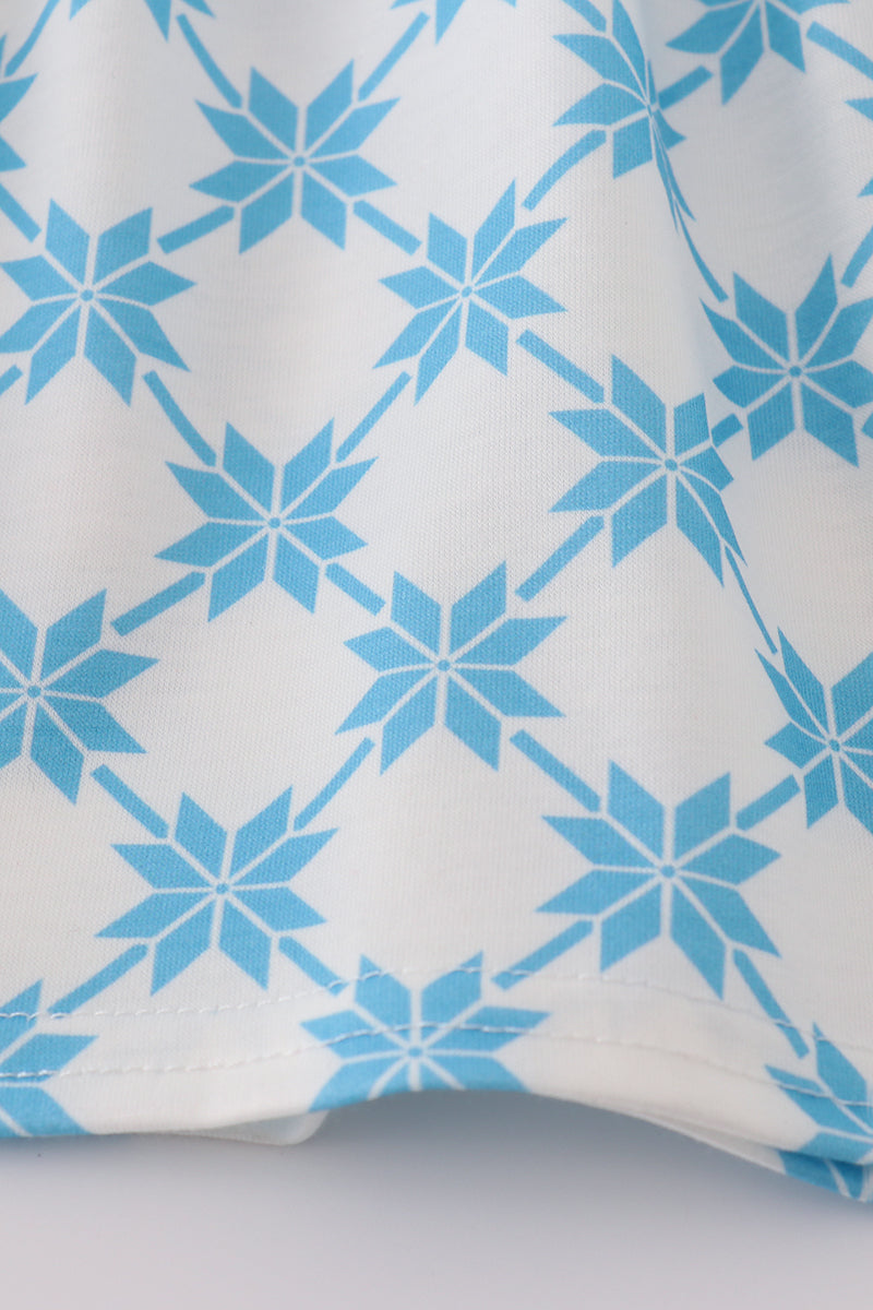 Blue character embroidery bow ruffle shorts set