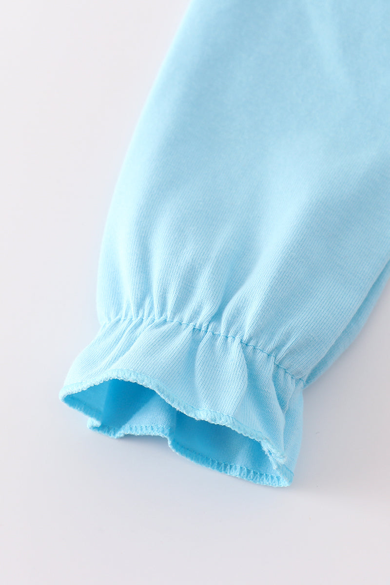 Dress your little one in holiday cheer with this playful Blue Deer Tree Santa Embroidery Ruffle Romper. Featuring charming embroidered details of deer, trees, and Santa, this romper adds festive fun to any occasion. The delicate ruffle accents bring a sweet touch, while the soft fabric keeps your child comfy for all-day wear. Perfect for holiday gatherings or photos, it’s a joyful outfit that sparks smiles and holiday spirit.