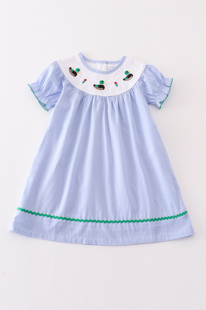 Premium Blue duck embroidery girl dress