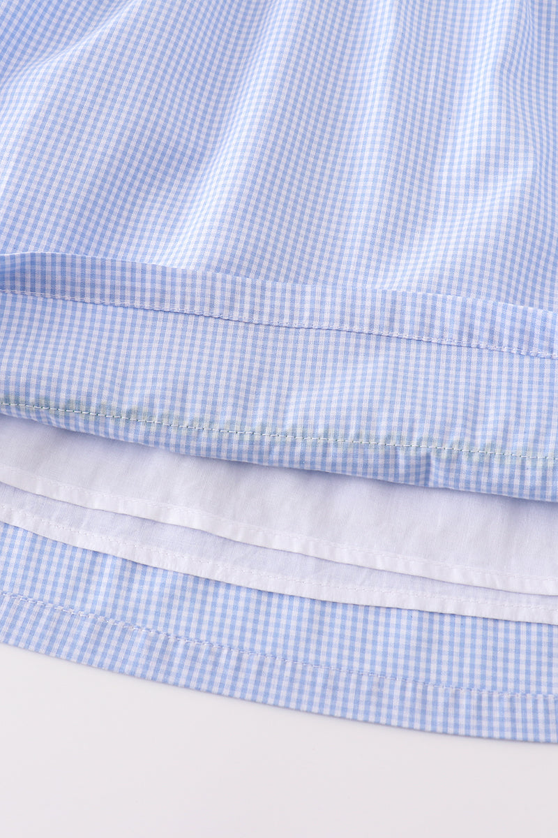 Quack up your little girl's wardrobe with this blue duck embroidered dress! A playful twist on a classic design, she'll be the cutest little duckling around. Perfect for any occasion, this dress is quack-tastic!