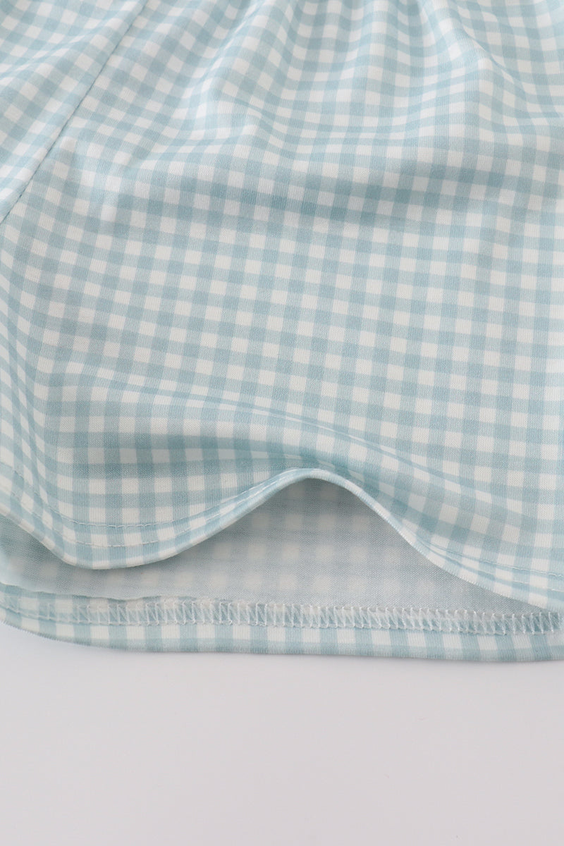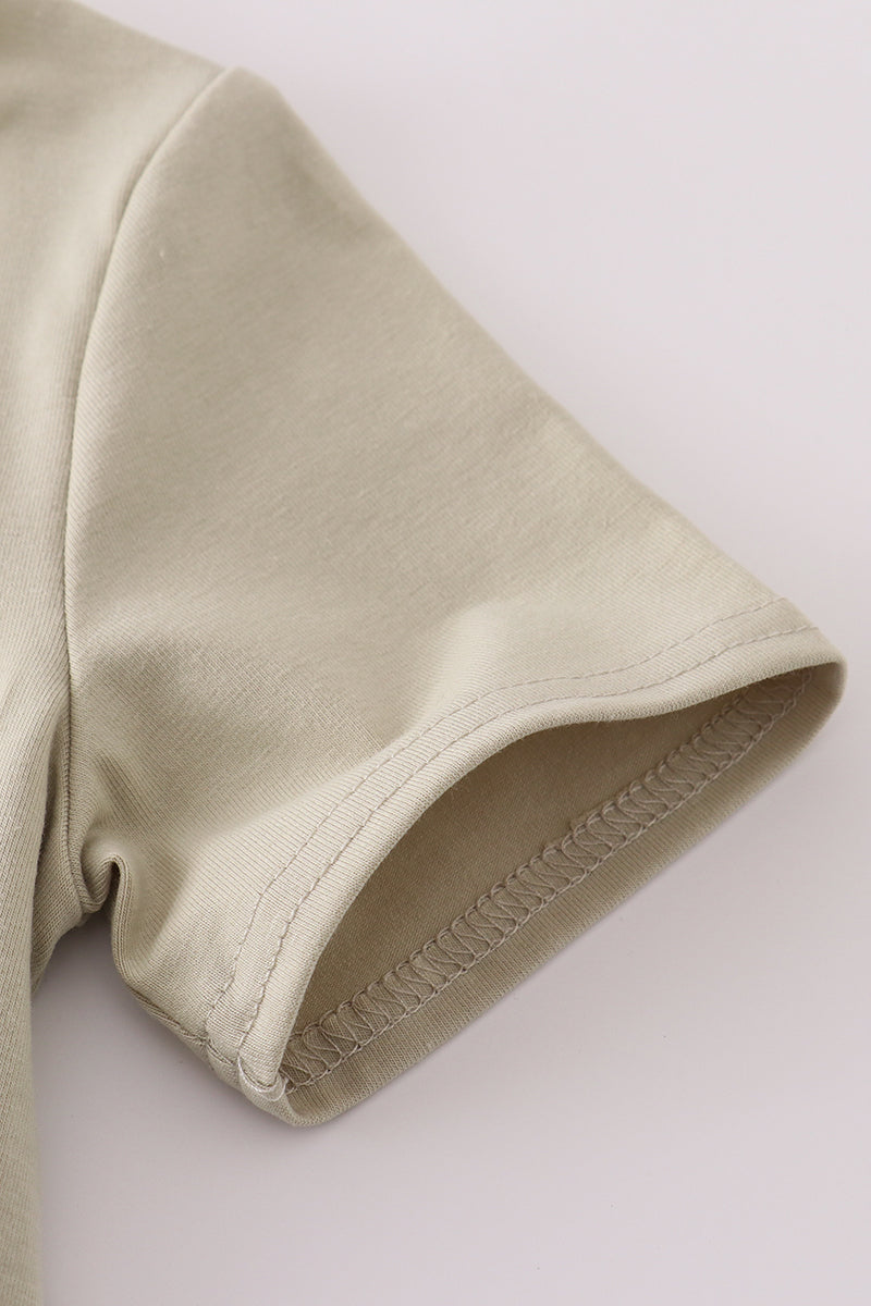 Green farm windmill embroidery shorts set