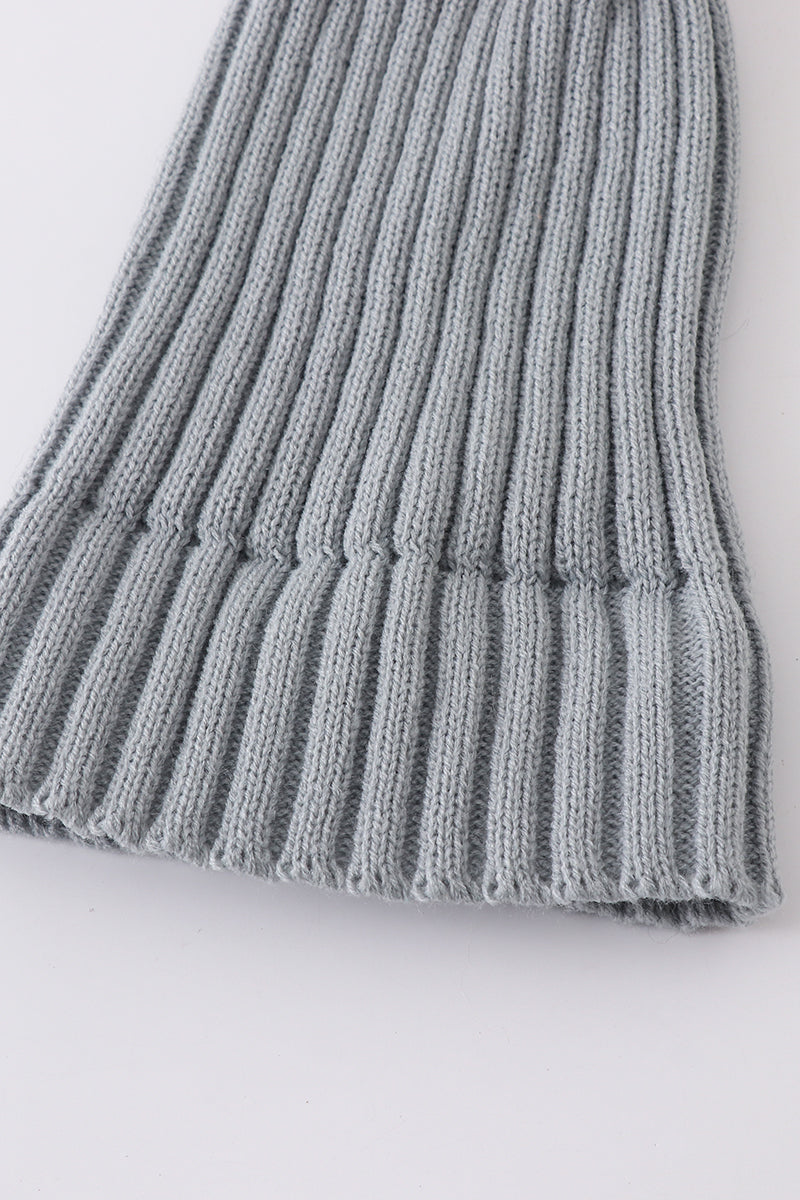 Sage knit pom pom beanie hat baby toddler adult