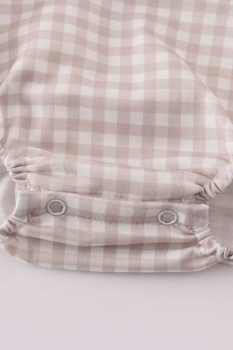Hop into spring with this adorable Tan Easter Bunny Embroidery Girl Bubble! Featuring a playful embroidered bunny design, this bubbly outfit is perfect for your little one to wear during Easter festivities. Bring fun and cuteness to any occasion with this quirky bubble. Hop to it and grab one now!
